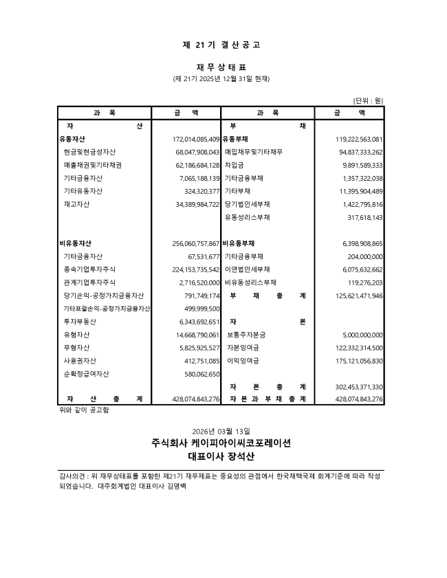 [공지]2026년 외부감사인 선임공고