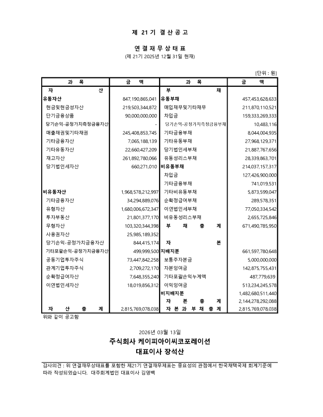 [공지]2026년 외부감사인 선임공고